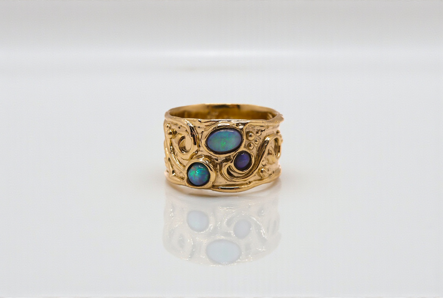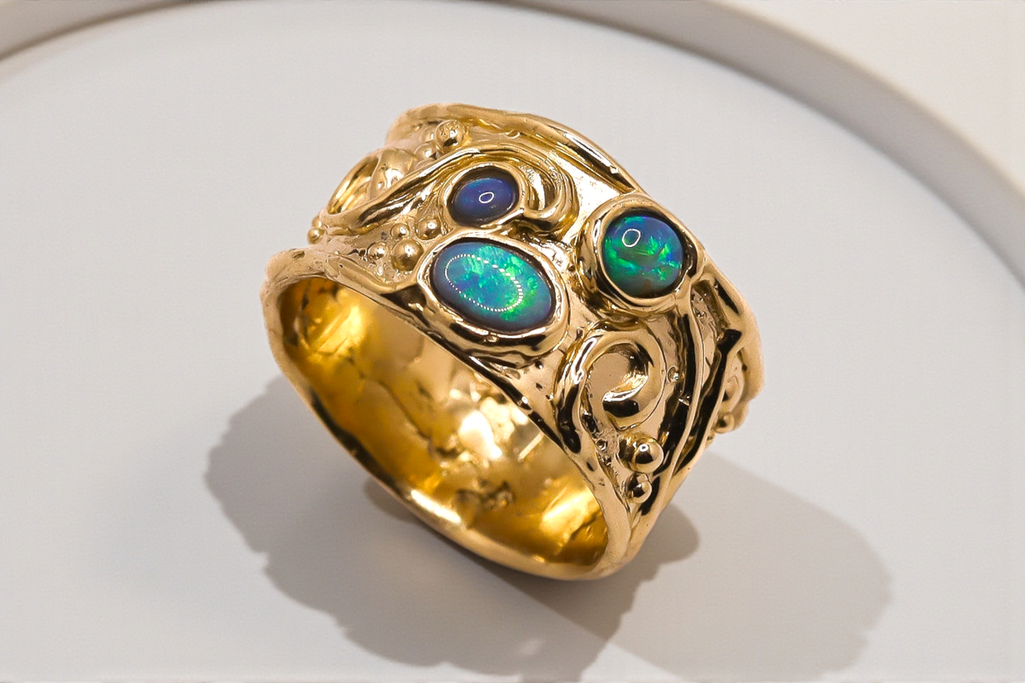 “Tidal Ember” — Fiery Opal Wave Band (5)