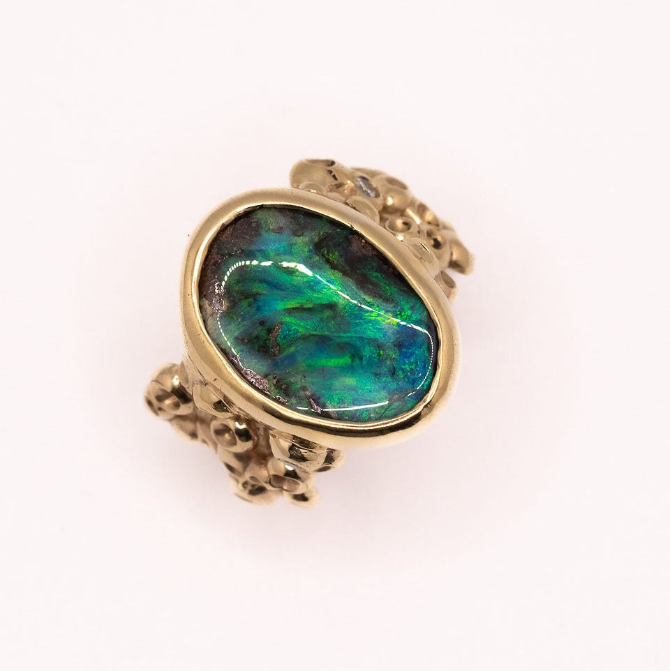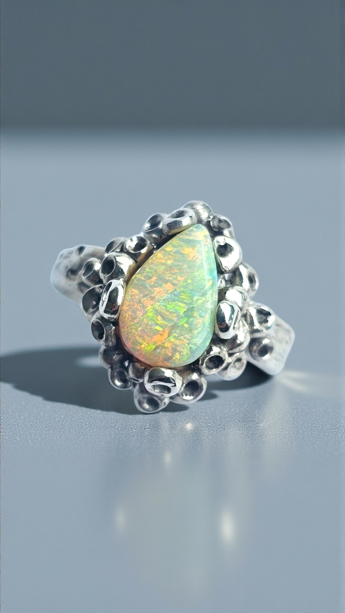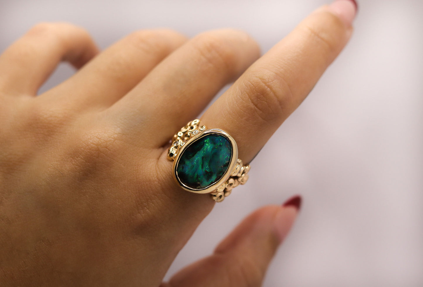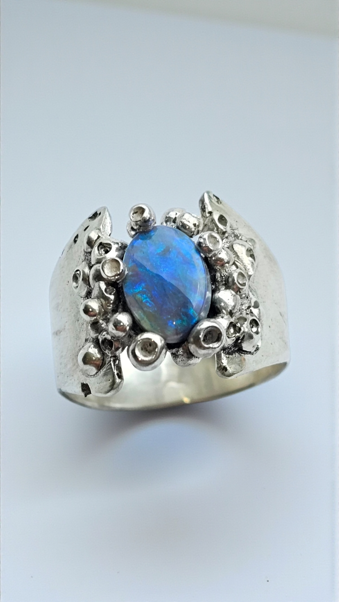 “Cosmic Reef” – Triangular Boulder Opal Ring (9.25)