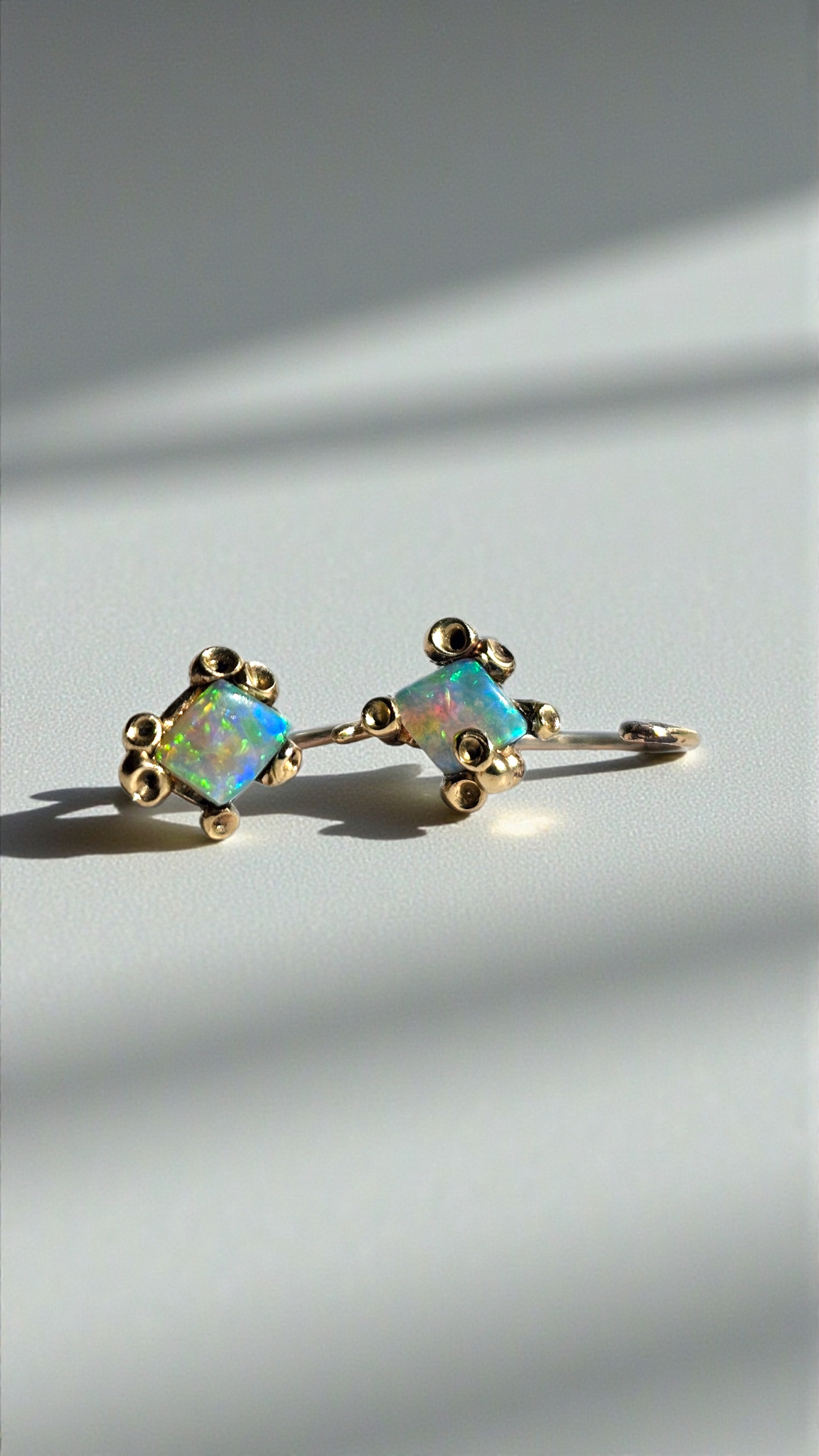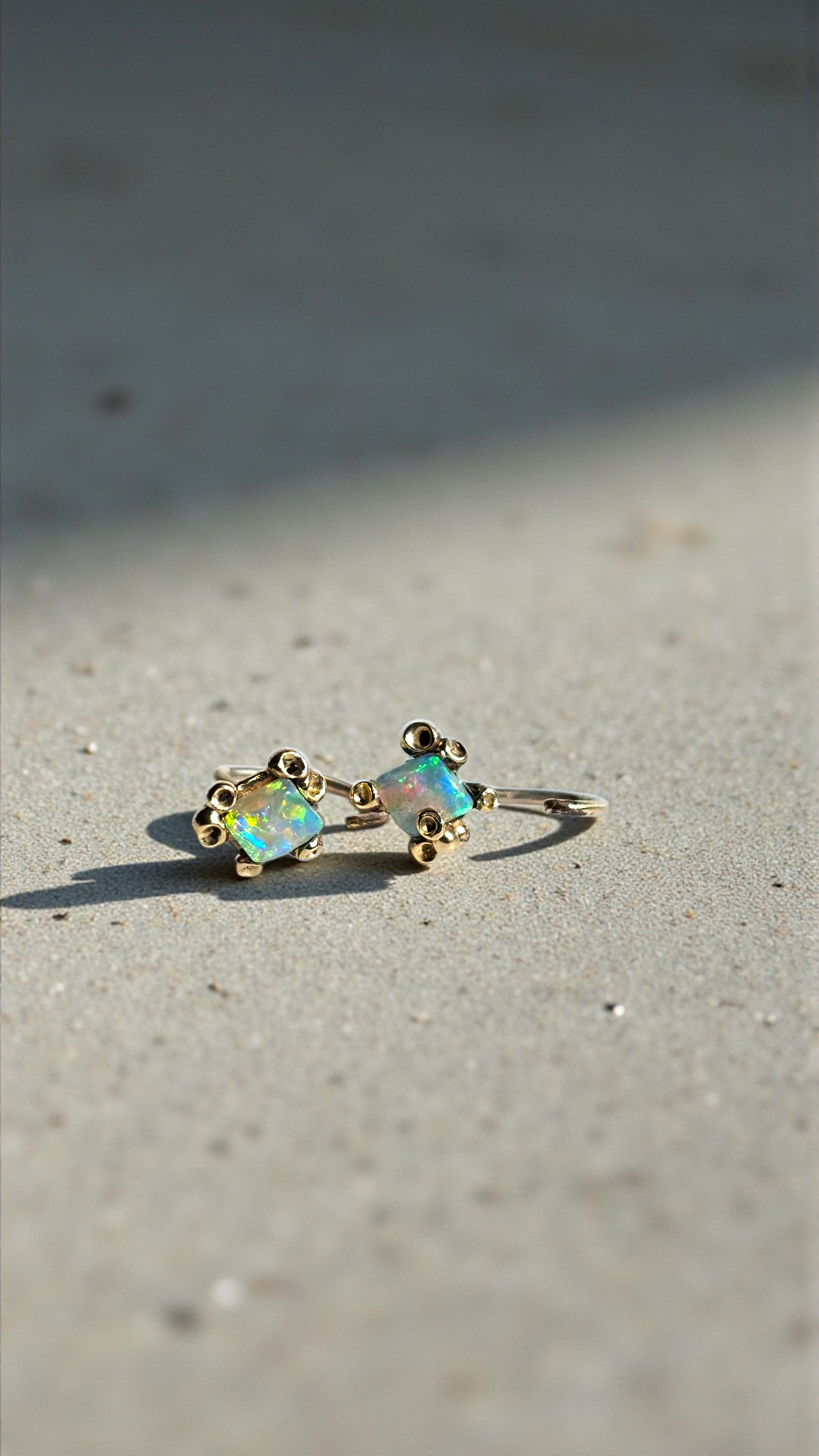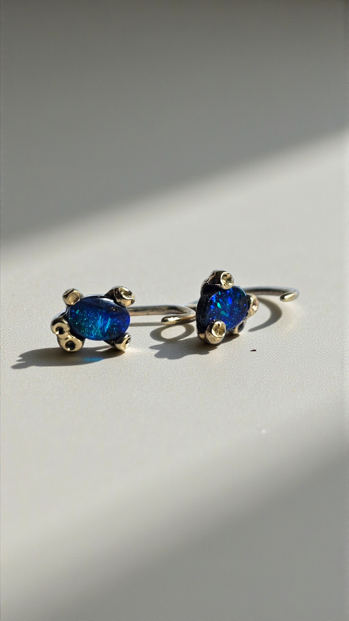 Sunken Gold Huggies – 9K Gold Opal Barnacle