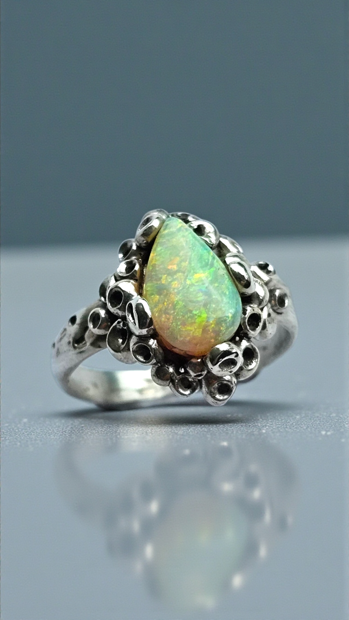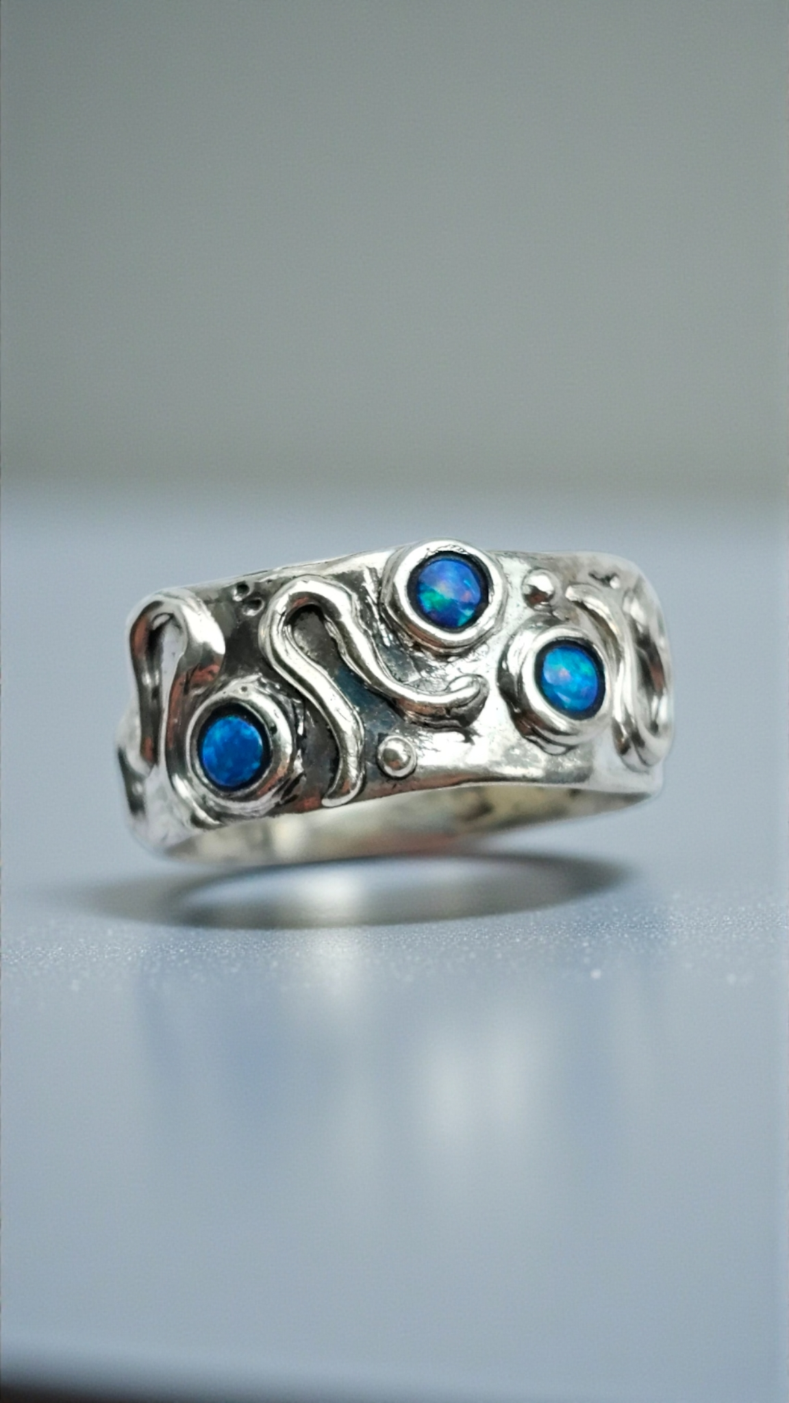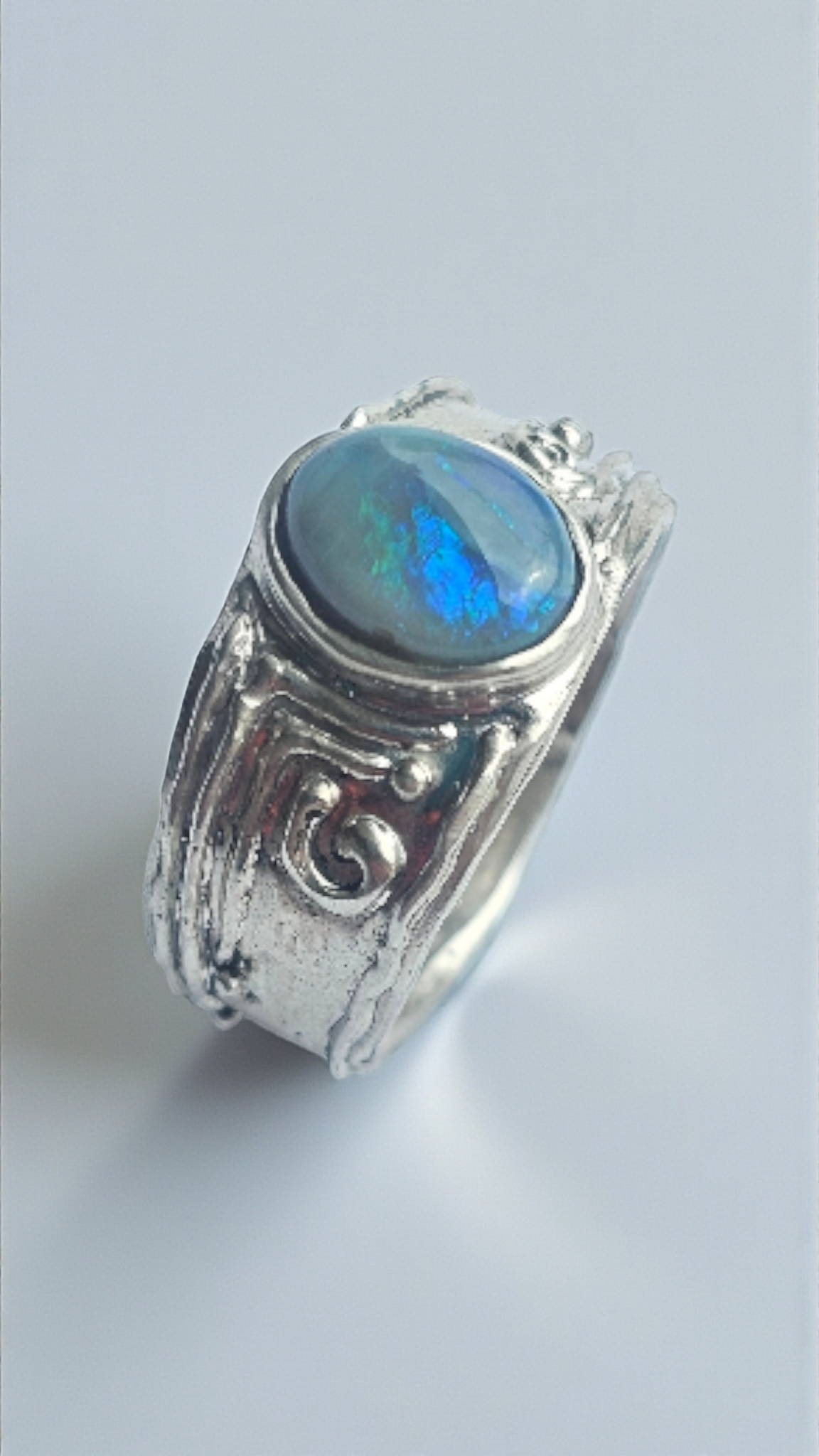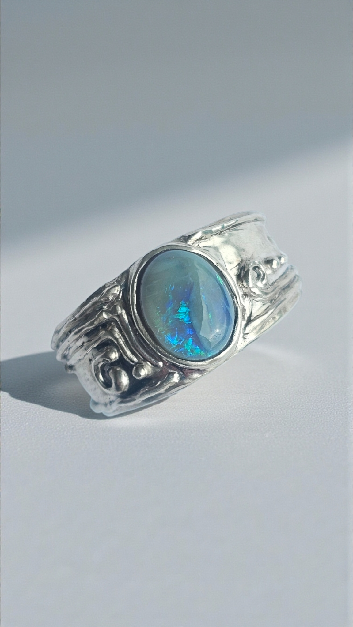 “Moonpool Drift” – Round Storm-Blue Opal Ring (10)