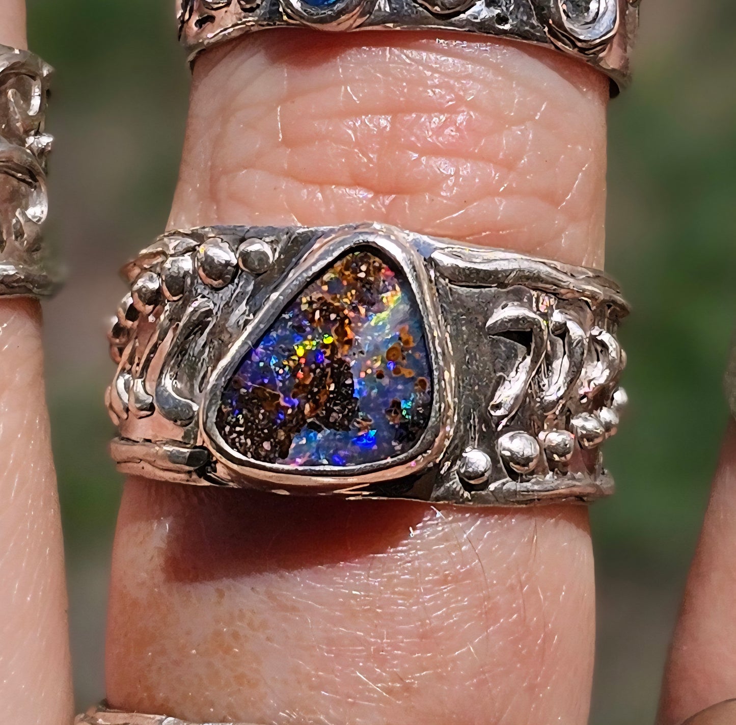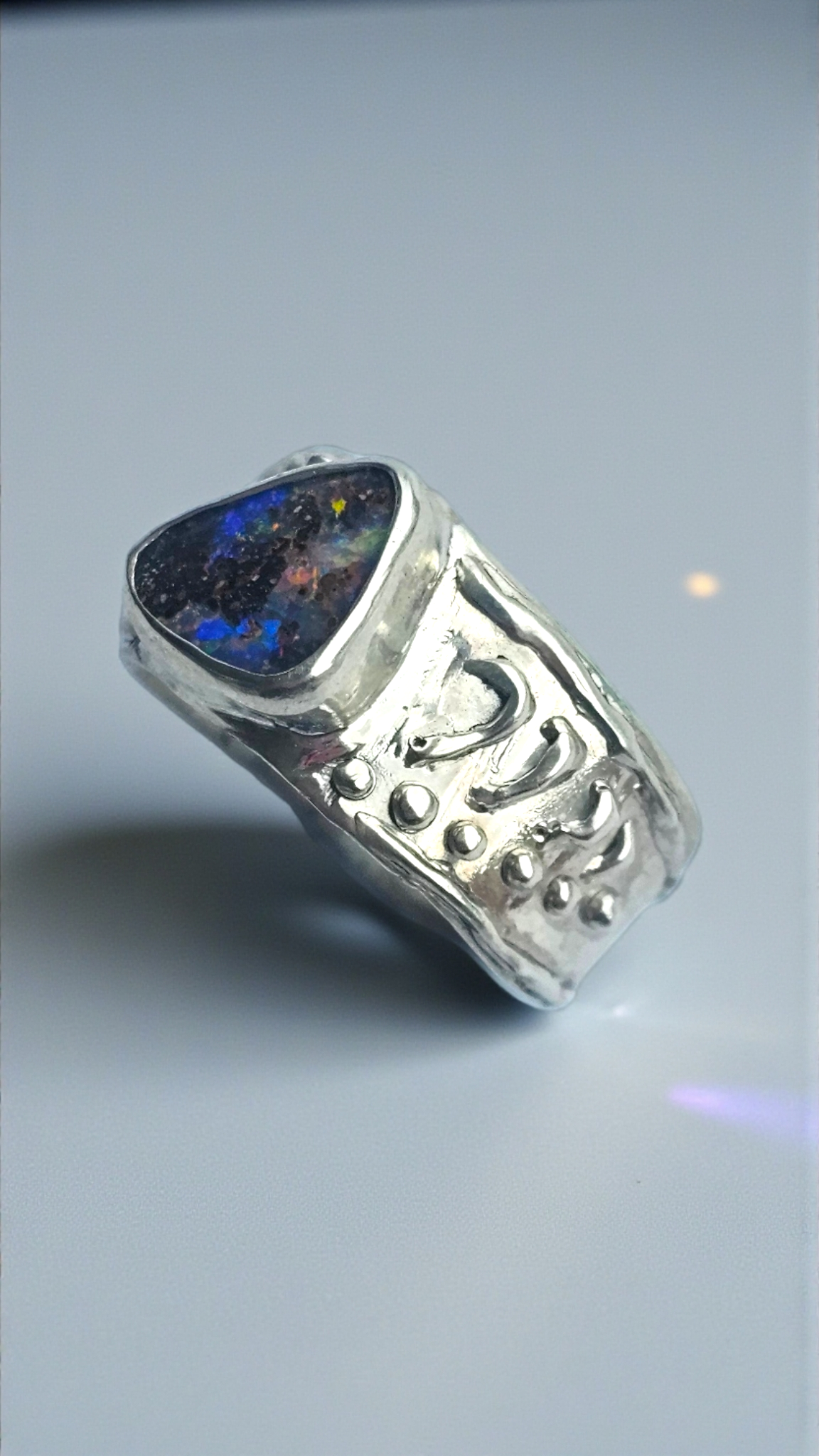 “Cosmic Reef” – Triangular Boulder Opal Ring (9.25)